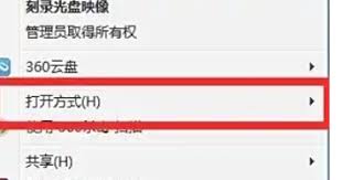 然后,右键点击这个光盘影像文件,在弹出的菜单中选择“打开方式”,再选择“winrar”。