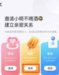 进入亲密关系页面后,你会看到基友和闺蜜这两种可绑定的关系类型。如果你想绑定基友关系,就点击“基友”选项,然后点击“邀请他成为基友”,对方接受邀请后,你们就成功绑定基友关系啦。从此,你们在 qq 上会拥有独特的基友标识,聊天互动也会更有乐趣。