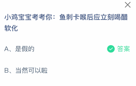 在玩“小鸡宝宝考考你”时,遇到关于鱼刺卡喉的问题,大家可别盲目选择答案哦!今天就来给大家详细讲讲鱼刺卡喉后立刻喝醋软化这个说法到底对不对。