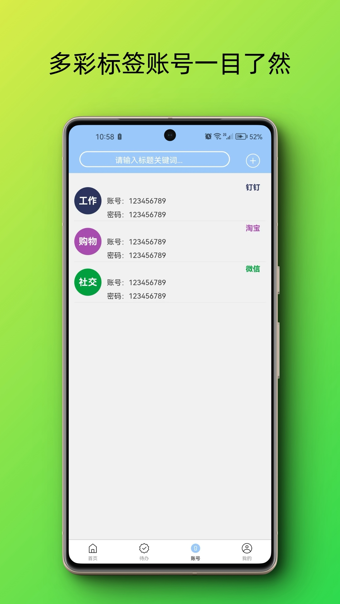 3. 记录分类存储,按类型快速搜索。